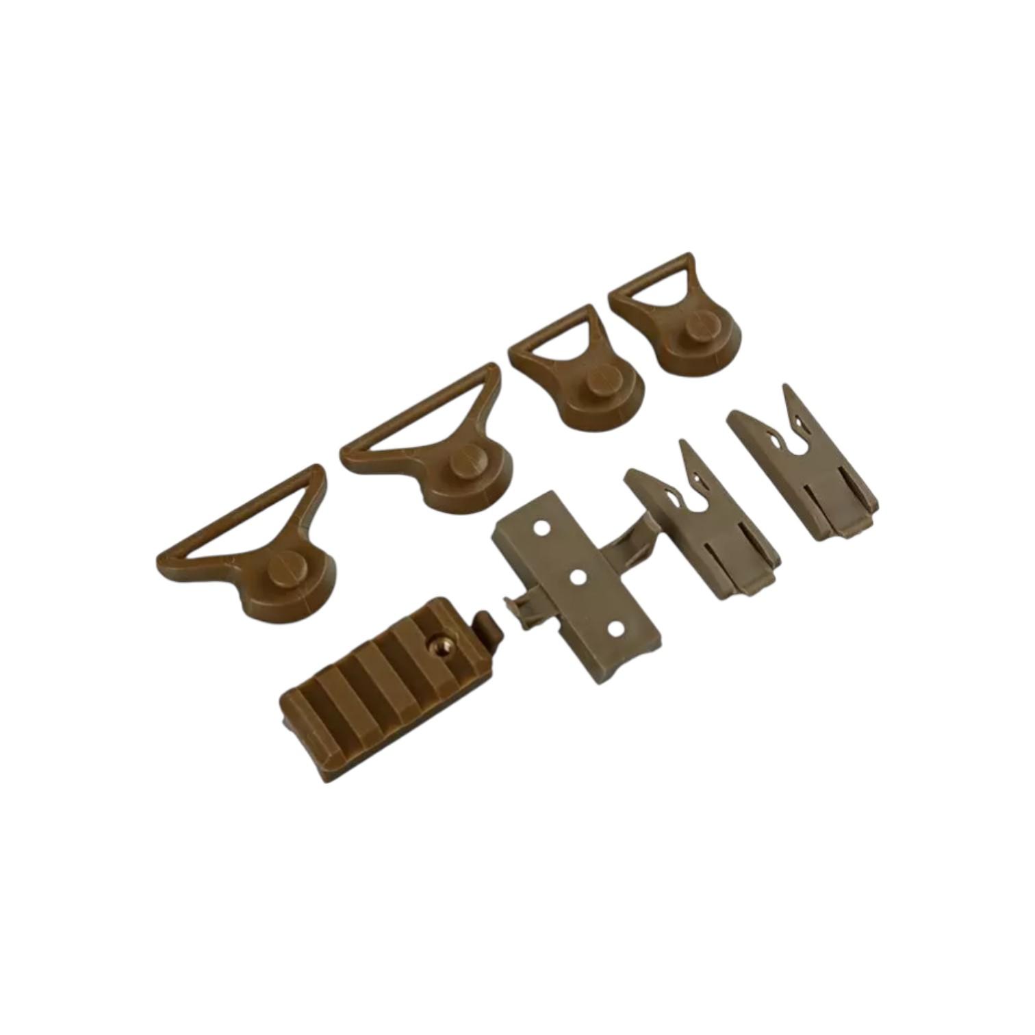 Comme de nombreux casques de conception Fast, le X-Shield est équipé de rails de fixation latéraux permettant l’ajout de divers équipements tels que lunettes, éclairage tactique, casque audio, etc. À l’avant, un système de fixation en polymère avec câbles de maintien permet l’installation de systèmes de vision nocturne. Un ensemble complet de fixations et clips modulaires est fourni.
